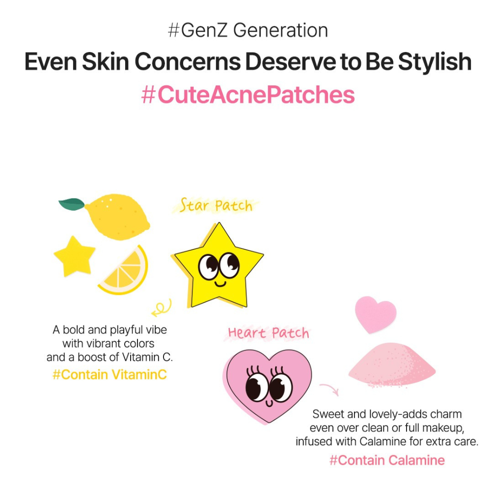 Each stylish patch has a unique function, with the star shape being infused in niacinamide to fade dark marks and the heart shape enriched with tea tree to soothe redness and irritation.